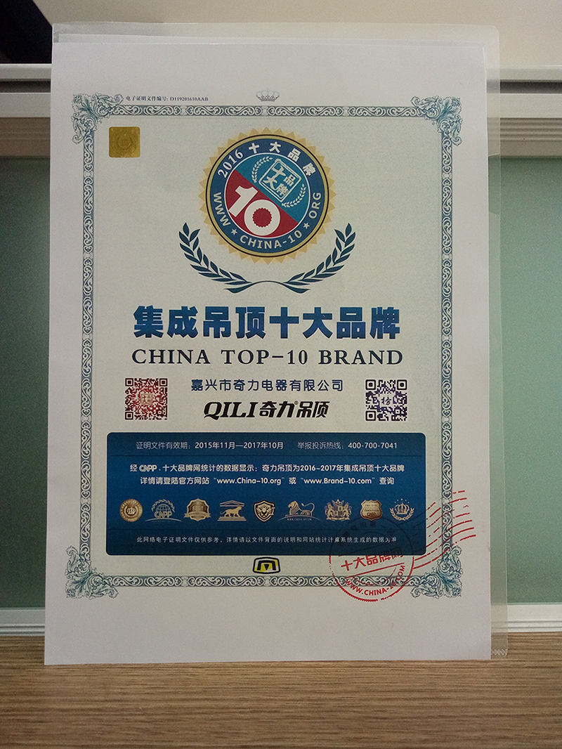 十大品牌的數據是亞洲品牌數據研究院通過國家相關部門、品牌評價機構、統計資料、市場調查數據、媒體互聯網、網友點擊投票,是大數據、云計算、數據統計真實客觀呈現的結果。由買購網聯合品牌權威機構舉辦的十大品牌評選活動于近日落下帷幕,行業十大品牌由此揭曉。奇力吊頂憑借自身的優質服務、獨特風格、產品品質、用戶口碑及品牌影響力等,獲得消費者的認可,榮獲“2016年度集成吊頂十大品牌稱號”。